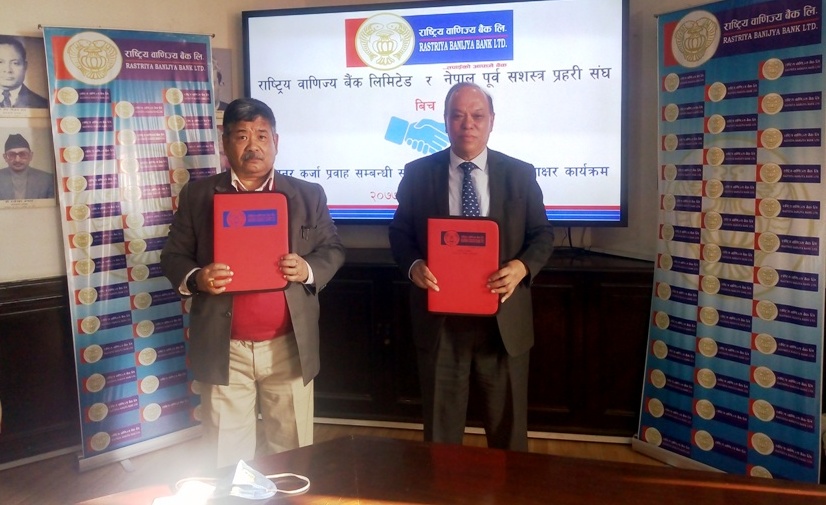 सम्झौतापत्रमा राष्ट्रिय वाणिज्य बैंकका प्रमुख कार्यकारी अधिकृत किरणकुमार श्रेष्ठ र नेपाल पूर्व सशस्त्र प्रहरी संघका अध्यक्ष किशोर कुमार लामाले हस्ताक्षर गरे ।