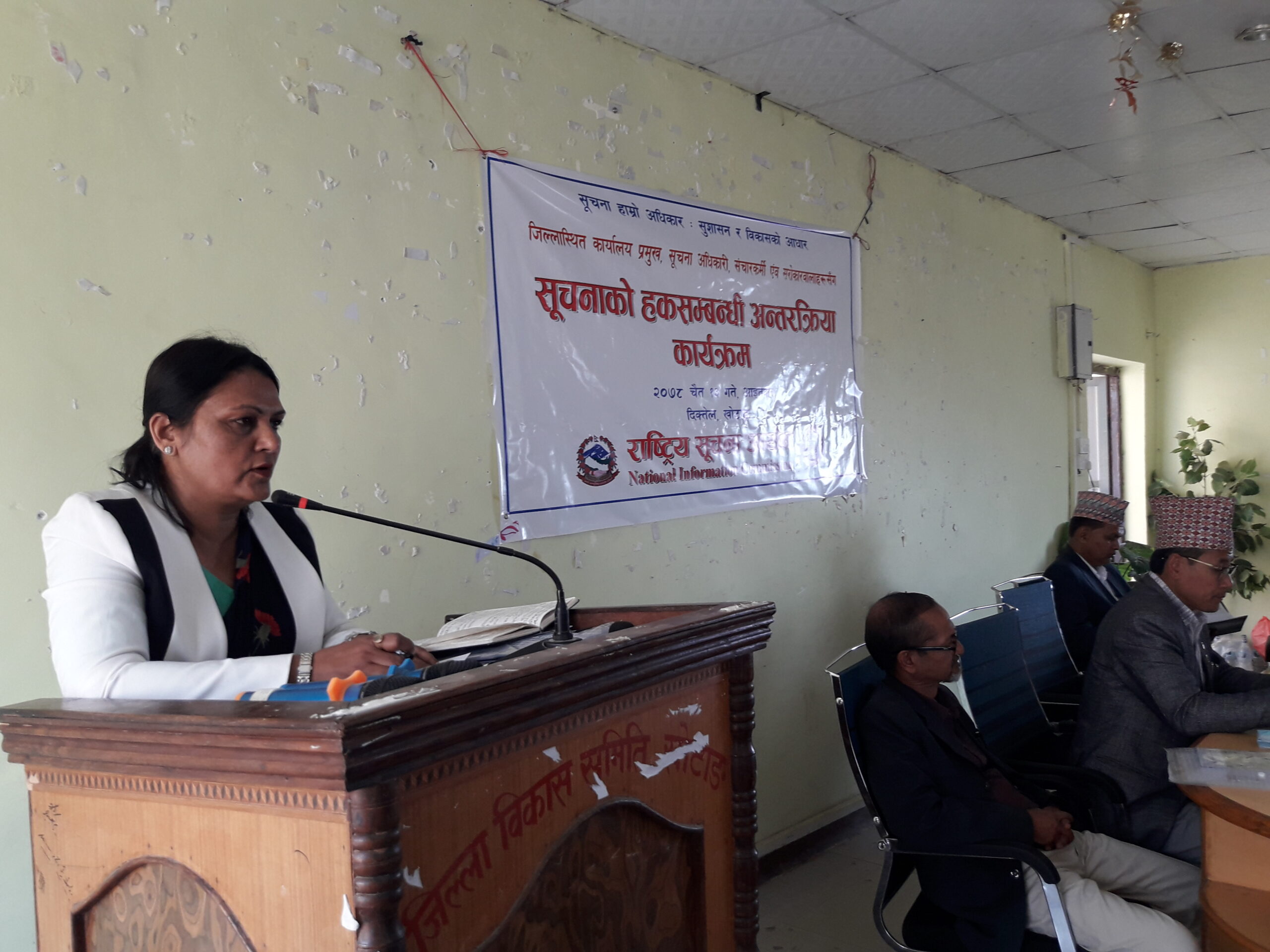 सूचनाको हक सम्बन्धी कार्यक्रममा बोलाइएको भए पनि जिल्लाका स्थानीय तहका प्रतिनिधिको भने अनुपस्थिति रहेको थियो ।