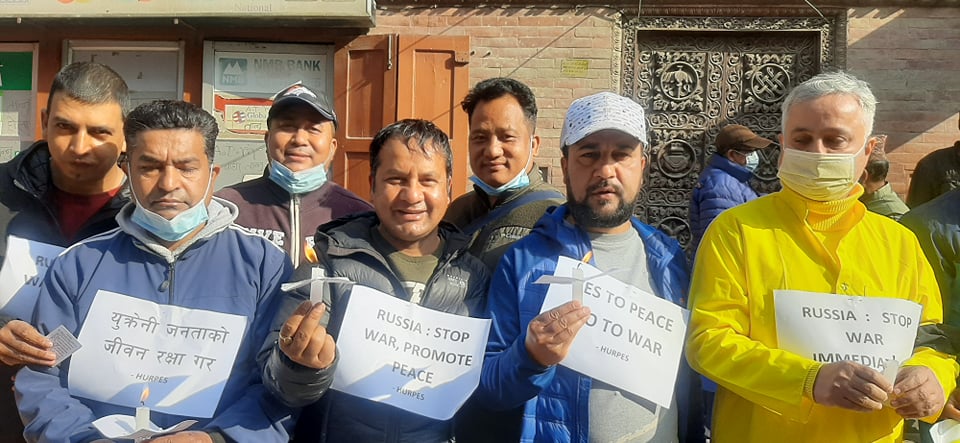 रुसलाई तत्काल युद्ध रोक्न आग्रह एवं युक्रेनी जनता तथा युक्रेनमा रहेका सबै मानिसको जीवन रक्षाको आह्वानसहित हातमा मैनवत्ती बोकेर उनीहरूले आधा घण्टासम्म प्रदर्शनमा गरेका हुन्।