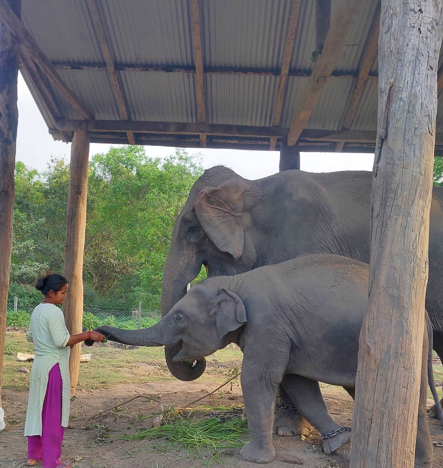 हात्तीको स्याहारदेखि गस्ती लैजाँदासम्मका लागि माहुत, पछुवा र फणित खटिने गरेका छन् । यहाँ हात्तीका लागि २१ कर्मचारी खटिएका छन् । ‘बिमला’ एक मात्र महिला कर्मचारीका रुपमा कार्यरत छिन् । “शारदाकली हुँदासम्म एक्लै पनि चराउन धेरै टाढासम्म जंगल पसेकी छु”, उनले भनिन्, “अहिले शेषराजगज सानै भएकाले हात्तीसारबाहेक अन्यत्र जानु परेको छैन ।”