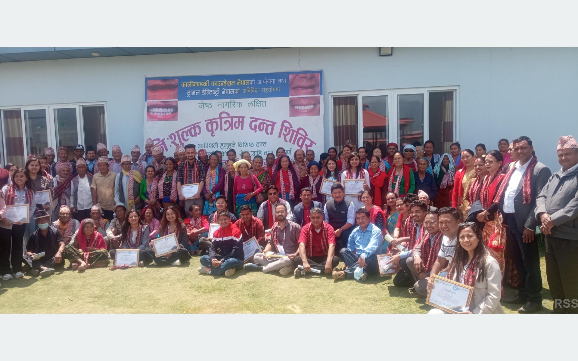 पाल्पाको रामपुरमा कालीगण्डकी फाउण्डेशन नेपालले ट्राभल डेन्टिष्ट्री नेपालको प्राविधिक सहयोगमा ज्येष्ठ नागरिकहरुलाई लक्षित गरी आयोजना गरिएको निःशुल्क कृत्रिम दन्त शिविरबाट यहाँका ज्येष्ठ नागरिकले सुविधा पाएका छन् ।