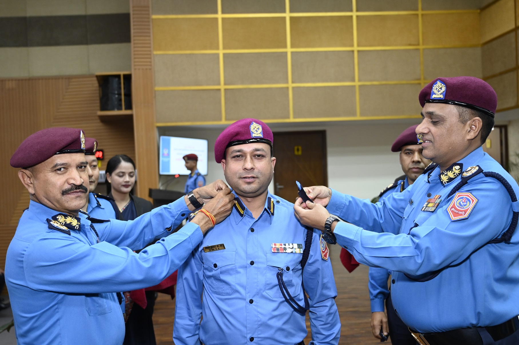 यही ५ जेठमा  नेपाल सरकार गृह मन्त्रालय (सचिवस्तर)को निर्णयले प्रहरी नायब उपरीक्षकबाट प्रहरी उपरीक्षक पदमा पदोन्नति भएका २२ जनामध्ये २१ जनालाई सोमबार दर्ज्यानी चिह्न प्रदान गरिएको हो ।
