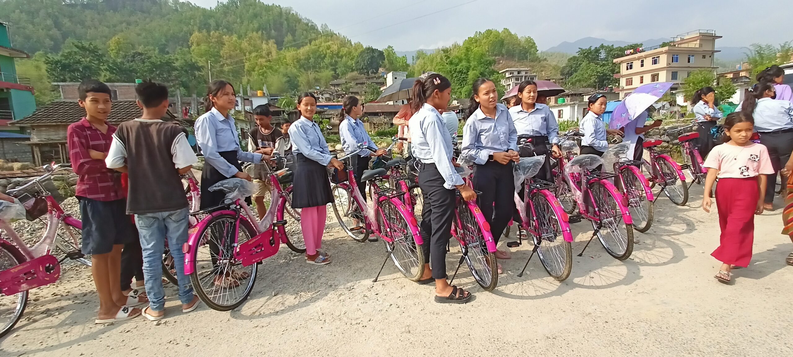 उनले भने, “गाउँपालिकाले शनिबार साइकल दिएको भए पनि छात्रा पैदल नै विद्यालयमा आइरहेका छन्, केही दिन सिक्न समय लाग्छ। आफैँ चलाउन सक्ने भएपछि साइकलमै विद्यालय आउजाउ गर्दछन् भन्ने हाम्रो विश्वास छ।”