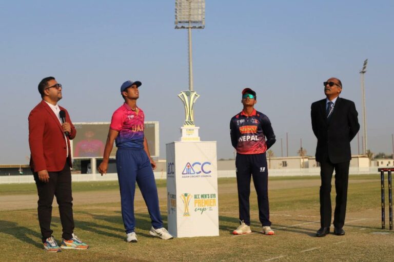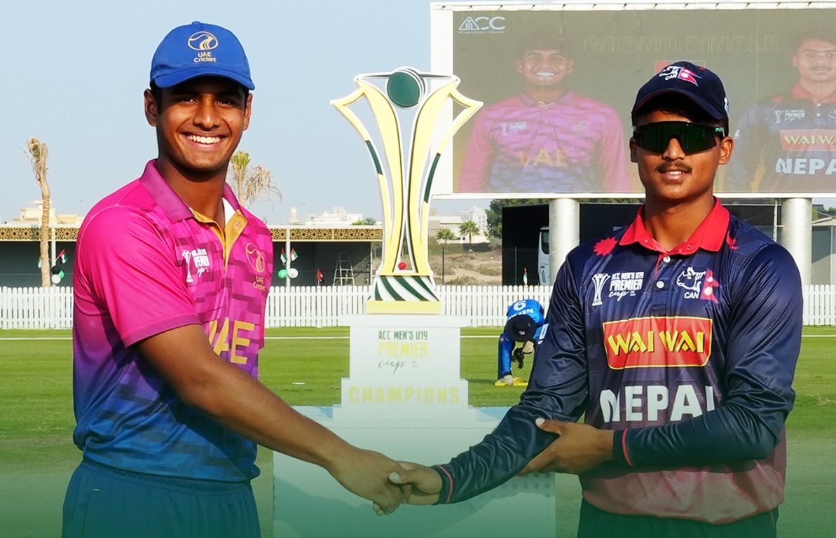 काठमाडौं – एसिसी पुरुष यु–१९ प्रिमियर कप क्रिकेटको फाइनलमा अहिले नेपाल र संयुक्त अरब इमिरेट्स (यूएई) भिड्दैछन्। यूएईको अजमानस्थित करवान मैदानमा नेपालले टस जितेर फिल्ड रोजेको नेपालले सुरुमा बलिङ गर्दैछ ।