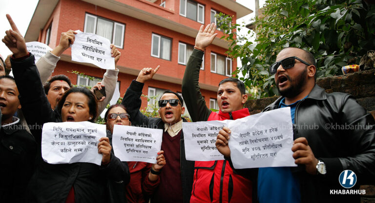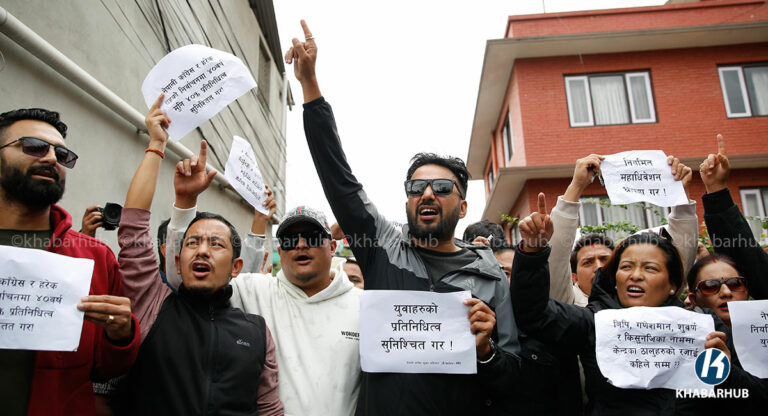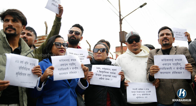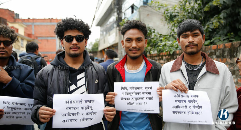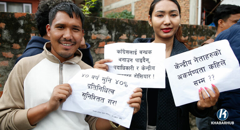 उनीहरूले नियमित महाधिवेशन र युवाको प्रतिनिधित्व सुनिश्चित गरिनुपर्ने मागसहित प्रदर्शन गरिरहेका थिए । पार्टी कार्यालयको प्रांगणमा जान गेट बन्द गरिएसँगै उनीहरूले बाहिरै बसेर नाराबाजी गरिरहेका छन् ।