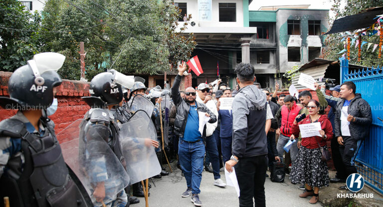पार्टी कार्यालय प्रवेश गर्ने मुखैमा प्रहरीको सुरक्षै घेरा तोडेर अभियान सम्बद्ध समूह पार्टी कार्यालयको गेटसम्म पुगेको हो ।