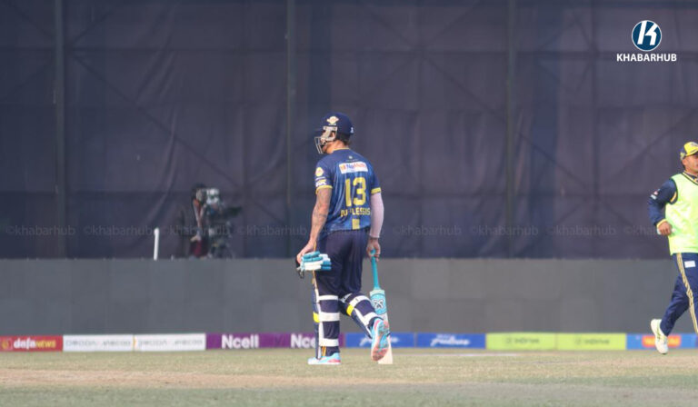 काठमाडौं – नेपाल प्रिमियर लिग (एनपीएल) सिजन २ अन्तर्गत बुधबारको खेलमा लुम्बिनी लायन्सविरुद्ध पहिला ब्याटिङमा उत्रिएको विराटनगर किङ्सका हेभीवेट ब्याटर रुपमा हेरिएका ओपनर फाफ डुप्लेसी सस्तैमा आउट भएका छन् ।