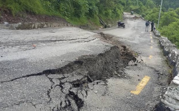 काठमाडौं– सिन्धुपाल्चोकको भोटेकोशी गाउँपालकिा–४ चारकिलोस्थति राजमार्गमा करिब १५ मिटर लम्बाइ र १ फिट गहिराइमा सडक भासिएको छ ।