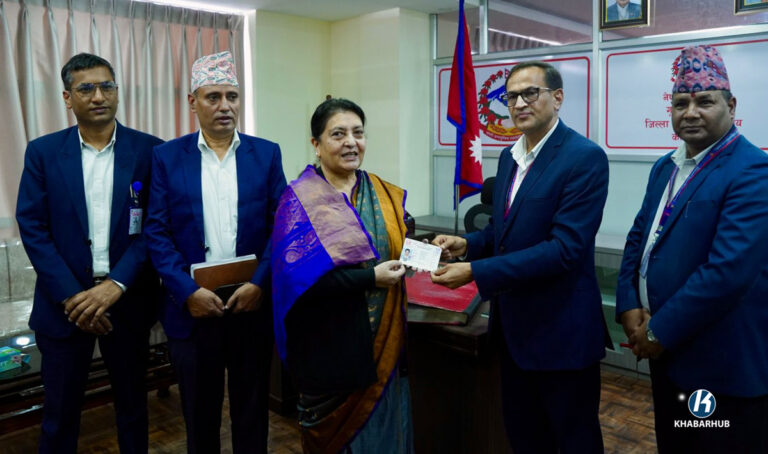 काठमाडौं-पूर्वराष्ट्रपति विद्यादेवी भण्डारीले मंगलबार जिल्ला प्रशासन कार्यालय काठमाडौंमा पुगेर नागरिकताको प्रतिलिपि लिएकी छन्।