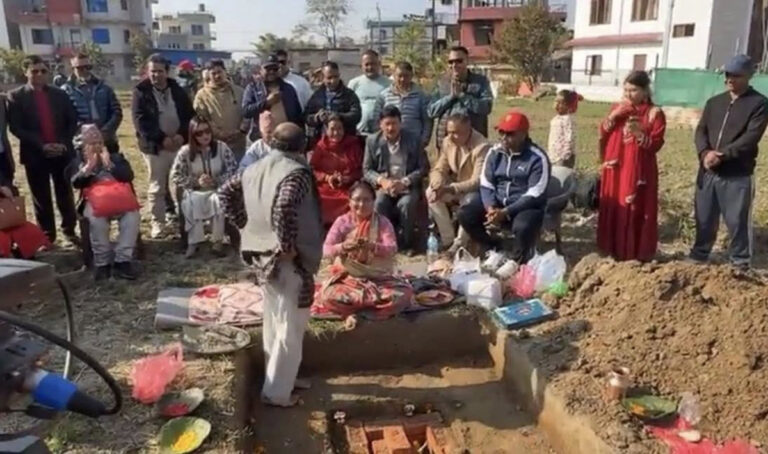 गुण्डुमा बनाउन थालियो ‘ओली कुटी’, राधिकाले गरिन् शिलान्यास « Khabarhub