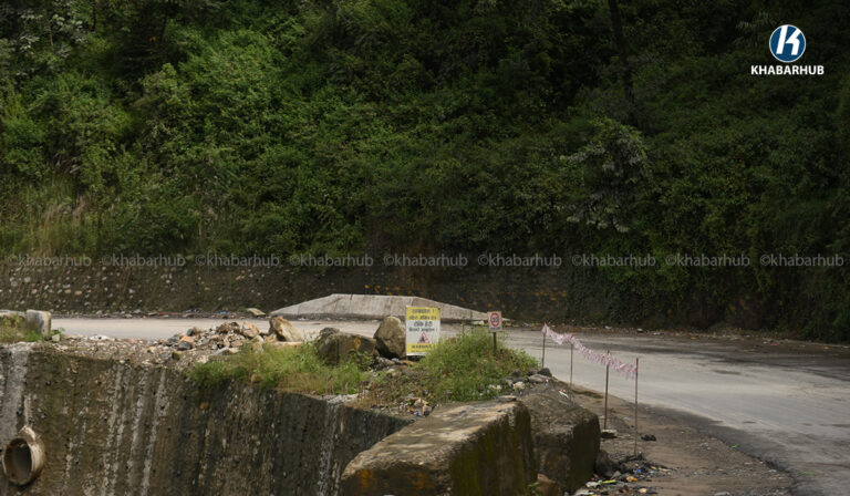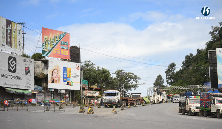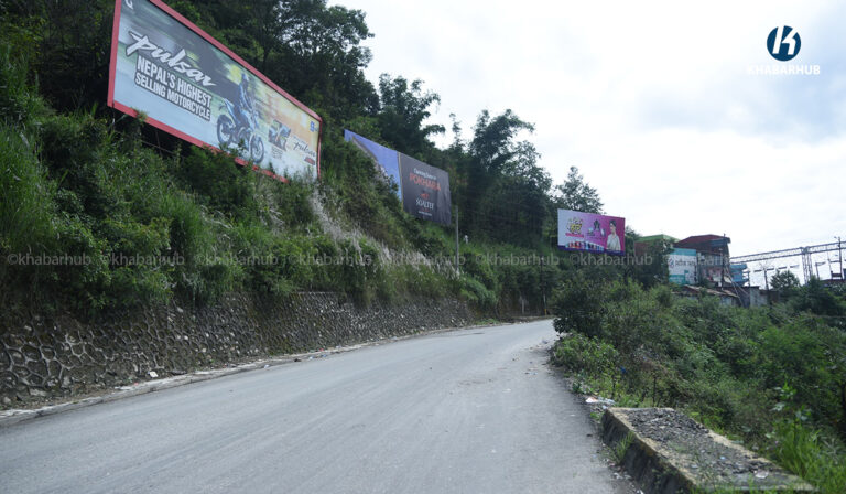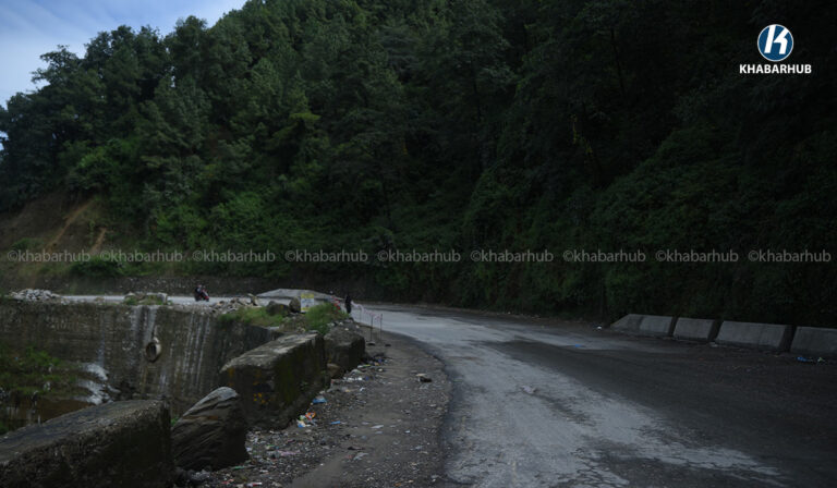 काठमाडौं– लगातारको बाढी र पहिरोका कारण नागढुंगा नाका बन्द भएपछि सडक सुनसान देखिन्छ।