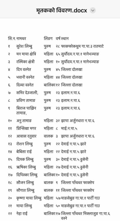 इलाम पहिरो : ३७ जनाको मृत्यु, सबैको सनाखत