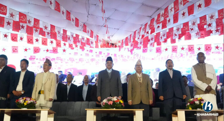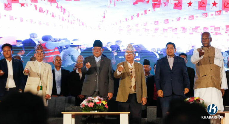 भृकुटीमण्डपमा एकता सभा, प्रचण्ड, माधवदेखि झलनाथसम्म (तस्बिरहरू) | Khabarhub Khabarhub