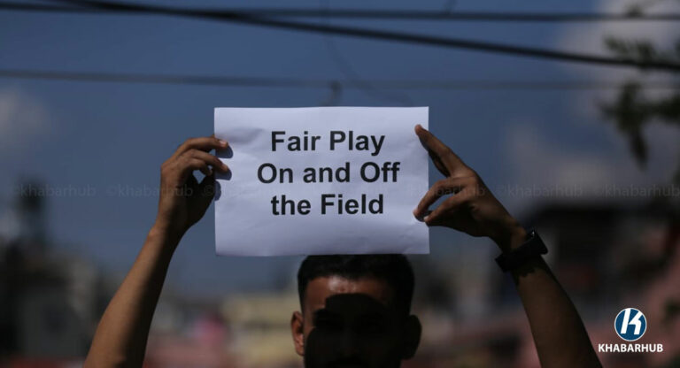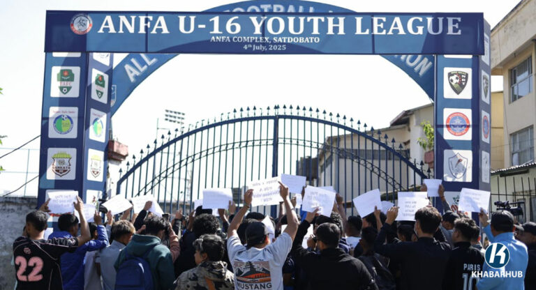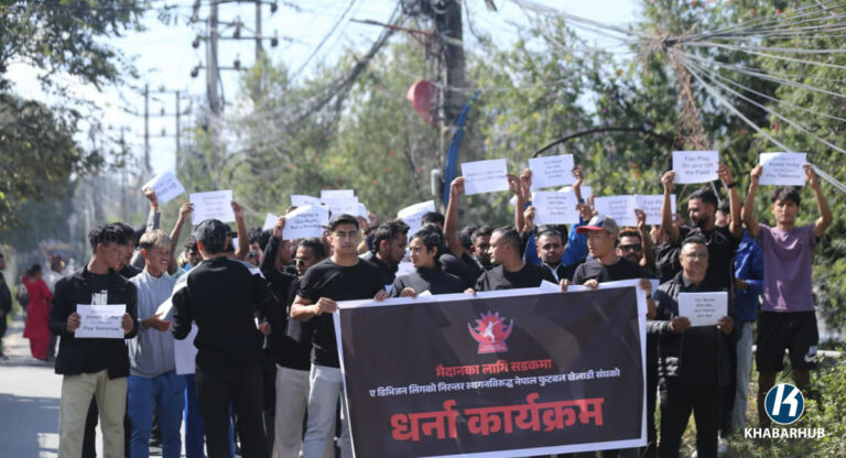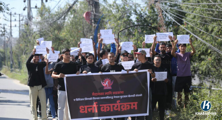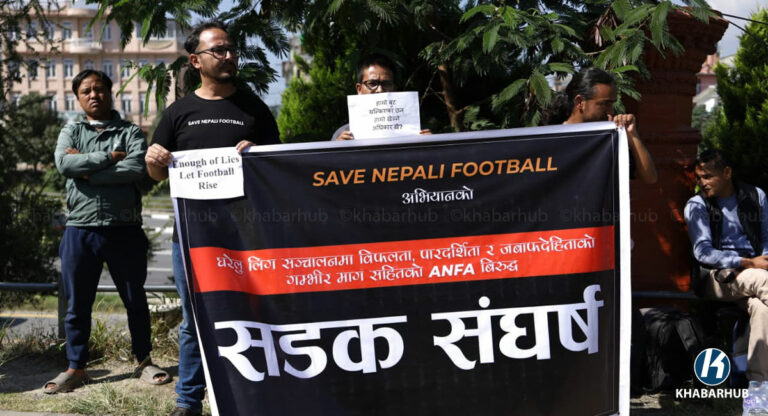 एन्फाविरुद्ध फुटबल खेलाडीको धर्ना (तस्बिरहरू) | Khabarhub Khabarhub