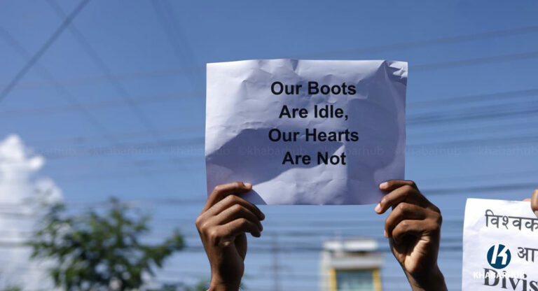 काठमाडौं– पछिल्लो २ वर्षयता लगातार नेपाली फुटबलको मेरुदण्ड मानिने सहिद स्मारक ए डिभिजन लिगको निरन्तर स्थगन गरेको विरुद्ध नेपाल फुटबल खेलाडी संघले धर्ना कार्यक्रम गरेको छ ।