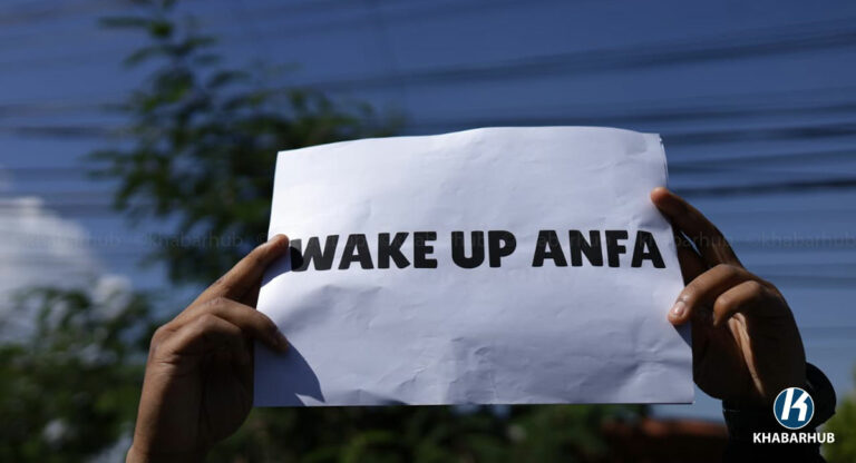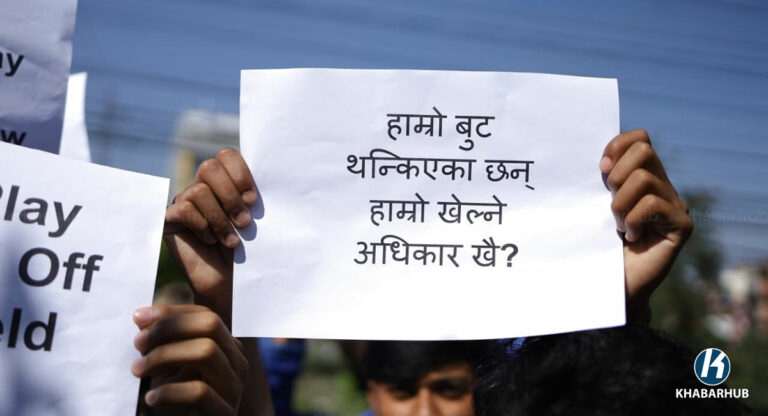 सातदोबाटो, ललितपुरस्थित एन्फा मुख्यालयबाहिर उनीहरूले हाम्रो बुट थन्किएका छन्, हाम्रो खेल्ने अधिकार खै ? लगायत विभिन्न नारा लेखिएका प्ले कार्डसहित प्रदर्शन गरेका हुन् ।