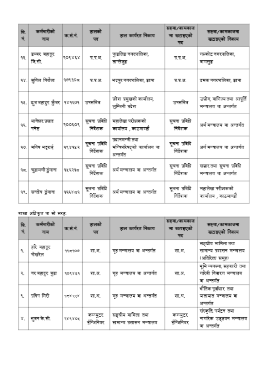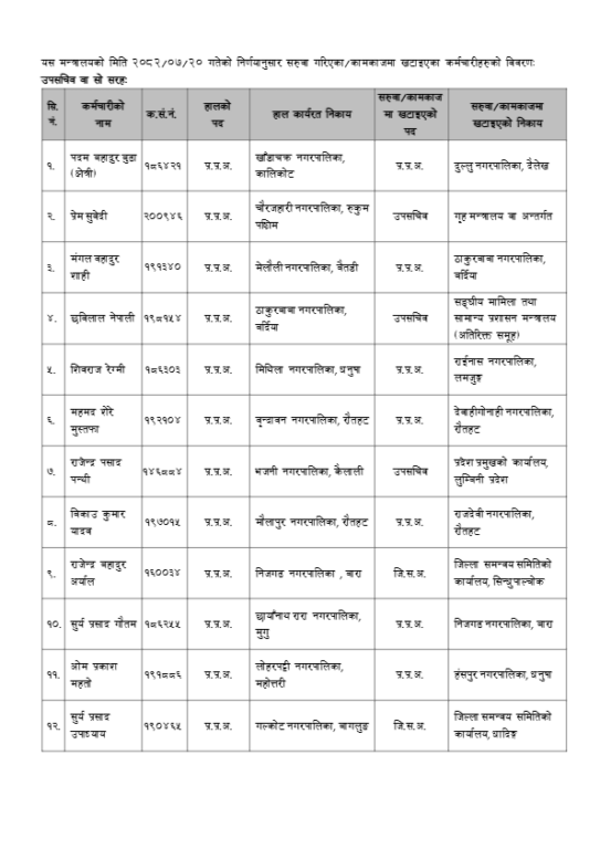 त्यस्तै केही अधिकृत पनि परिवर्तन भएका छन्। ८ शाखा अधिकृतको कार्यक्षेत्र फेरबदल गरेको मन्त्रालयले गरेको छ।