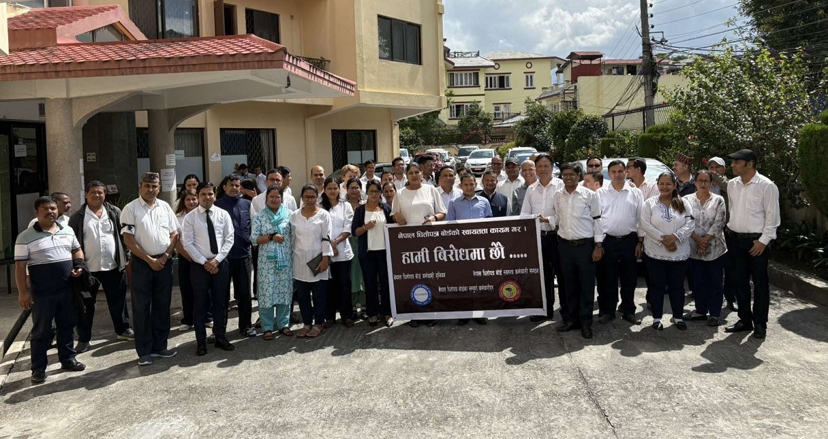 काठमाडौं– नेपाल धितोपत्र बोर्ड (सेबोन)मा कर्मचारीले मंगलबार पनि आन्दोलन जारी राखेका छन् । अर्थ मन्त्रालयले सेबोनका कर्मचारीको कल्याणकोष र सुरक्षण कोष खारेज गर्ने निर्णय गरेपछि आन्दोलनमा उत्रिएका कर्मचारीहरूले दुई दशैं अघिदेखि सुरु गरेको आन्दोलनलाई जारी राखेका हुन् ।