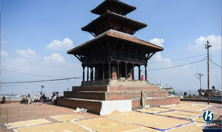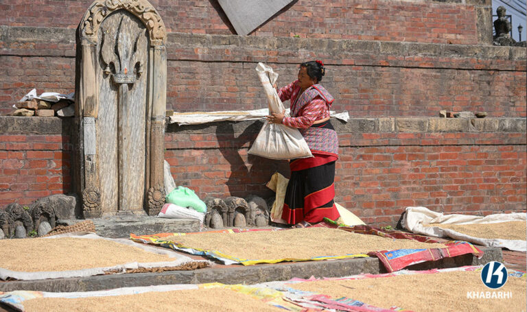 काठमाडौं– कीर्तिपुरका किसानहरूलाई अहिले धान सुकाउने चटारो परेको छ । जेठको अन्तिम हप्ता र असार महिनामा रोपिएको धान अहिले भित्राउन उनीहरू व्यस्त देखिएका हुन् ।