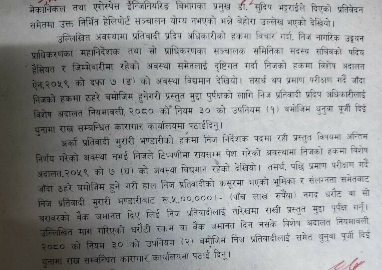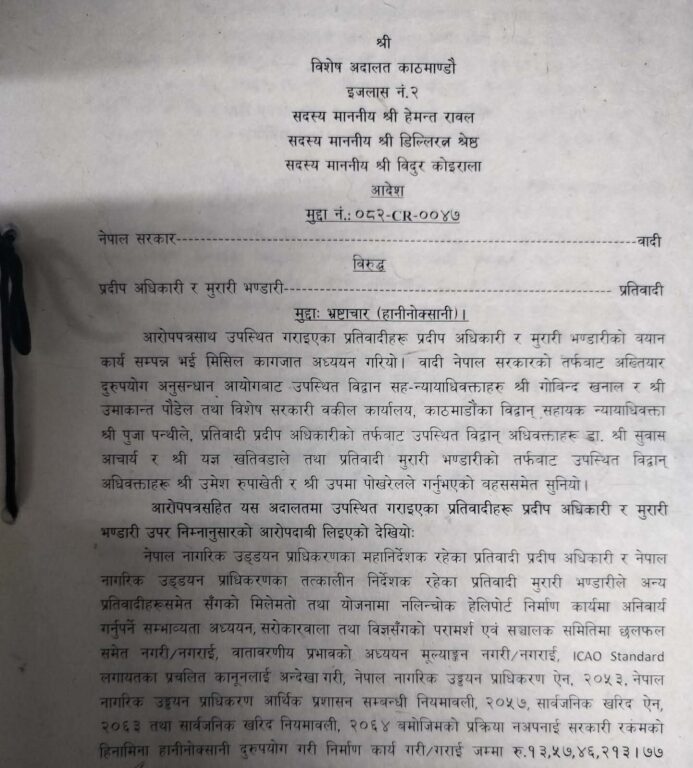 भक्तपुरको नालिन्चोक हेलीप्याड निर्माणको क्रममा भ्रष्टाचार गरेको आरोपमा १३ करोड ५७ लाख बिगो दाबीसहित मुद्दा दायर गरिएको थियो ।