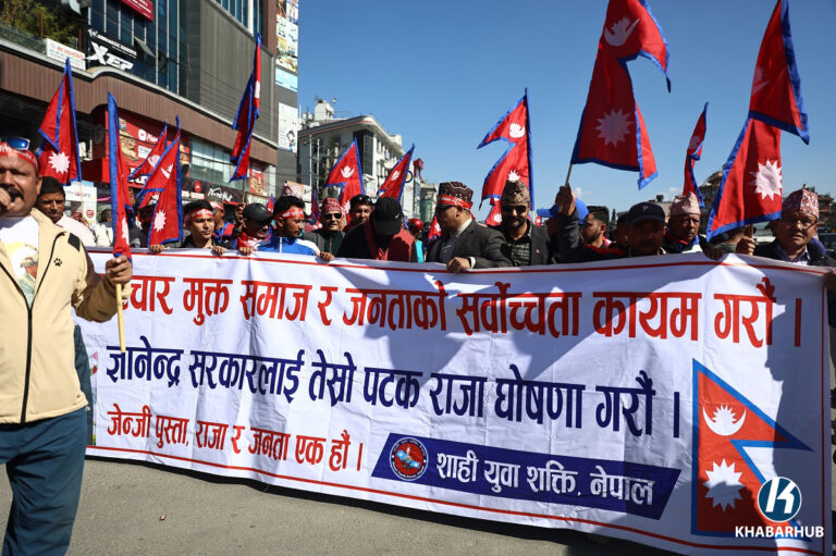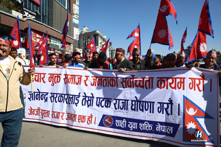 काठमाडौं– शाही युवा शक्ति नेपाल केन्द्रिय समितिले ‘जेन-जी पुस्ता जनता र राजा एक हौ देश बचाऔँ’ भन्ने नारासहित जन-प्रदर्शन कार्यक्रम गरेको छ ।