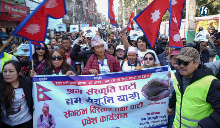 काठमाडौं– श्रम संस्कृति पार्टीको काठमाडौं, भक्तपुर र ललितपुर जिल्ला संगठन विस्तार र अध्यक्ष हर्क साम्पाङको सम्बोधनका लागि र्याली सुरु भएको छ ।