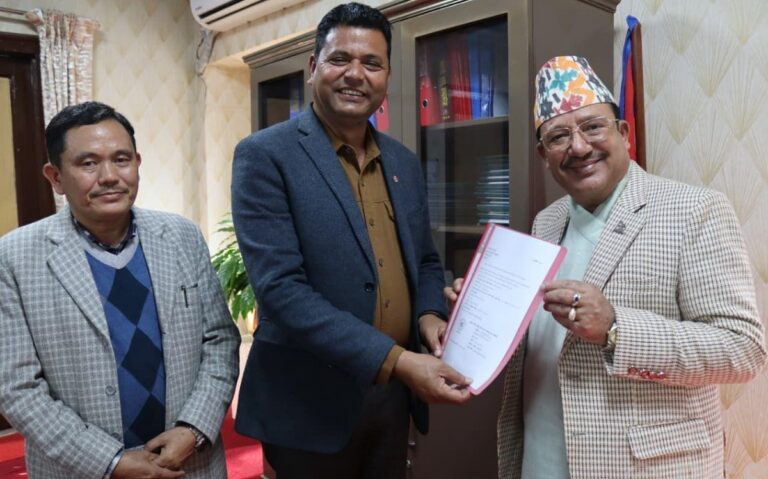 दस्तावेज बुझाउँदै वरिष्ठ उपाध्यक्ष पोखरेल : हाम्रा मुद्दाहरू महाधिवेशनमा समावेश हुन्छन्