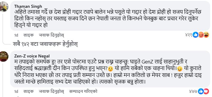उनीमाथि आशा गरेका युवाहरू आक्रोशित छन् । हिजो उनको पोस्टमा एक मिनेटमा पाँच हजार लाइक आउने स्थिति हजारमा झरेको छ । प्रशंसा गालीमा परिणत भएको छ ।