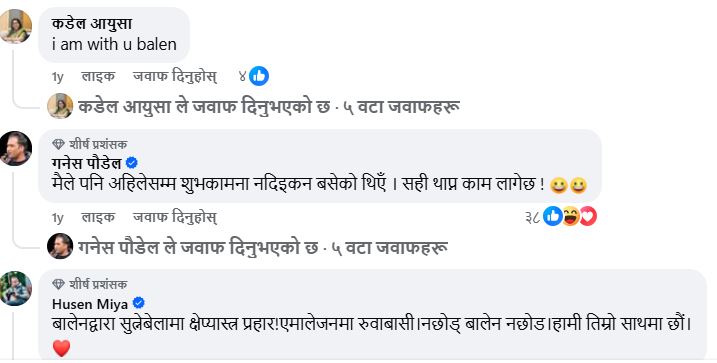 बालेनले लेखेको एक स्टाटस बिजुलीको करेन्ट सरह प्रवाह हुन्थ्यो । जसले सरकारको ढोका ढकढक्याउने साहस राख्थ्यो । एकै मिनेटमा हजारौं लाइक, कमेन्ट र सेयर हुन्थ्यो । र त्यसमा करिब ९९ प्रतिशतले उनलाई समर्थन जनाएका हुन्थे ।सरकार विरुद्ध लेख्न र बोल्न सक्ने उनको हिम्मतलाई धेरैले मन पराएका थिए ।