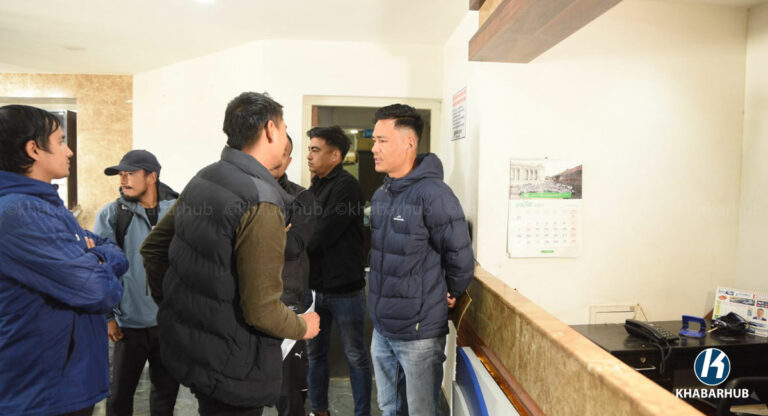 एन्फासँगको वार्ताका लागि नेपाल फुटबल खेलाडी संघका अध्यक्ष विक्रम लामासहितको टोली सातदोबाटो स्थित एन्फा कम्प्लेक्स पुगेको छ। उनीहरूले वार्ताको प्रत्यक्ष प्रसारण गर्नुपर्ने नभए वार्तामै नबस्ने अडान राखेका छन् ।