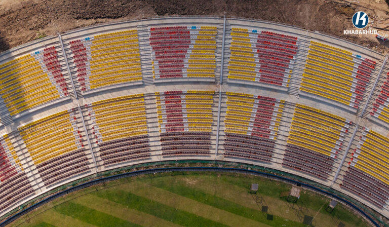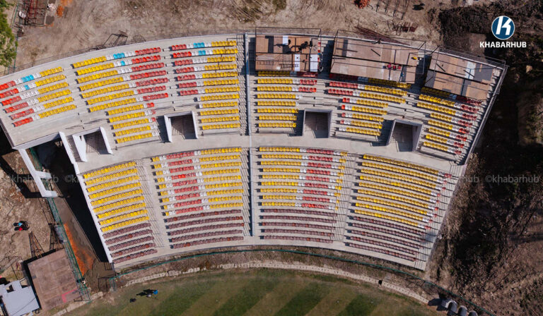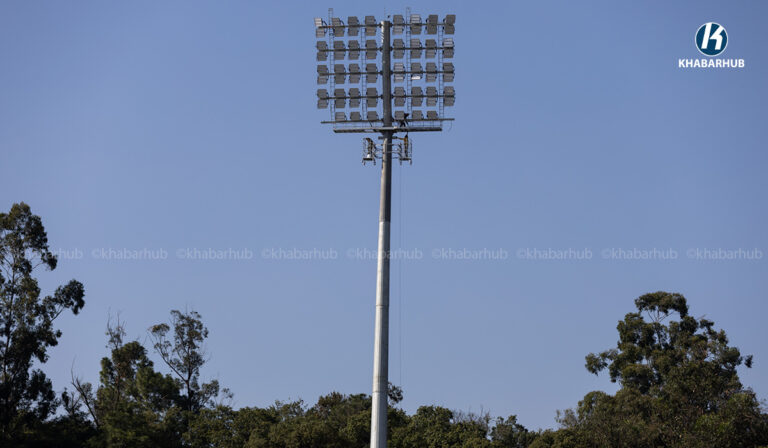 रंगशालामा प्यारापिट निर्माणको भौतिक प्रगति ९५ प्रतिशत रहेको छ भने फ्लडलाइटको ६ वटै पोल उठाइसकिएको छ । लाइट जडानको काम धमाधम हुँदैछ।