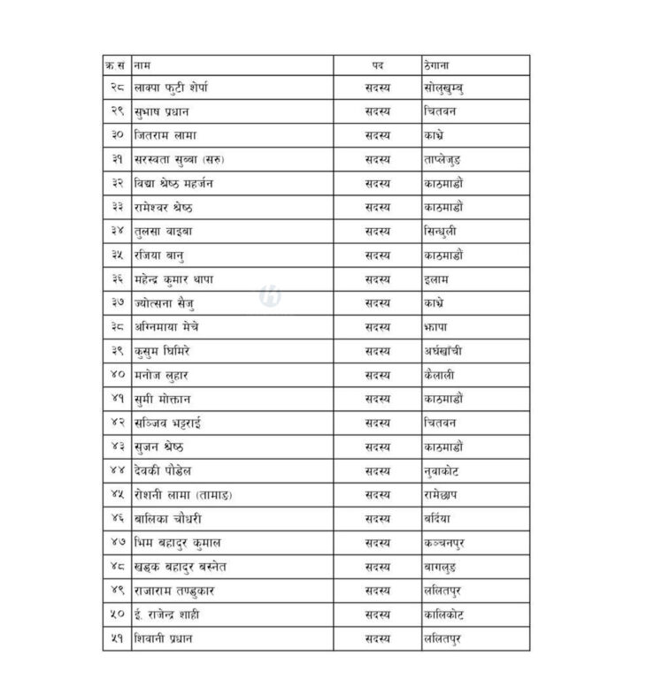 समितिमा उज्यालो नेपाल पार्टीका पूर्व संयोजक ज्ञानबहादुर तामाङ सदस्य छन्। यस्तै पाँचथरका पहिचानवादी डा. महेन्द्र लावती, इलाम २ को उपनिर्वाचनमा पराजित डकेन्द्र थेगिम, ताप्लेजुङकी सरस्वती लिम्बू लगायत पनि समेटिएका छन् ।