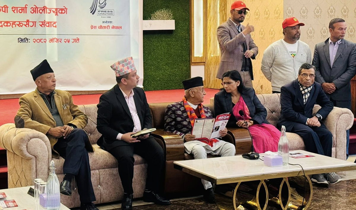 बिहीबार सम्पादकहरूसँगको अन्तरक्रियामा बोल्ने क्रममा उनले यस्तो बताएका हुन् । ‘अहिलेको यो सरकार ढोकामाथि गोबर लगाएर नाग टाँसे जस्तै हो । हिजोको एउटा कलाविहीन नाटकको पटाक्षेप कसरी भयो तपाईंहरूलाई थाहै छ’, उनले भने, ‘जति कलाविहीन ढंगले नाटकको पर्दा उठेको थियो । त्यही कलाविहीन ढंगले पर्दा उठेको छ।’