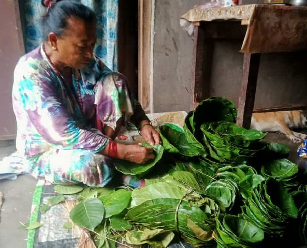 वनबाट सालको पात ल्याउने र फुसर्दमा हातैले दुनाटपरी गाँस्ने उनको अहिले दैनिकी बनेको छ । उनी घर खर्चका लागि यसैबाट पैसा जुटाउन सकेको बताउँछिन् ।