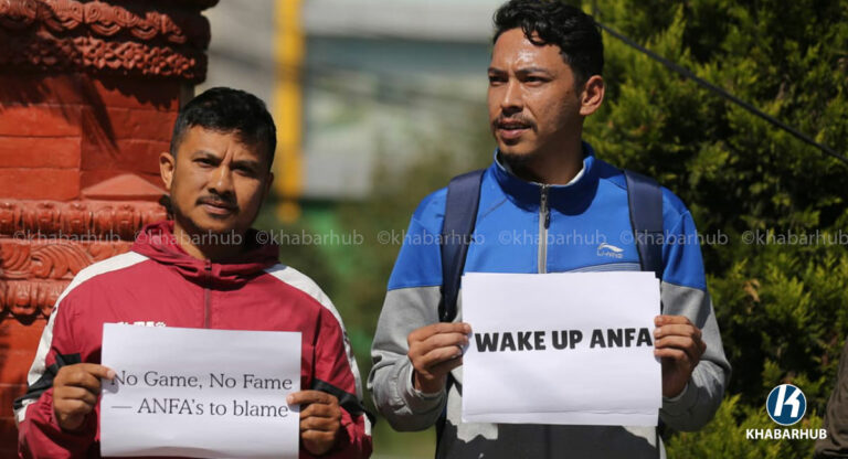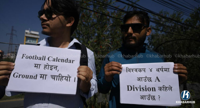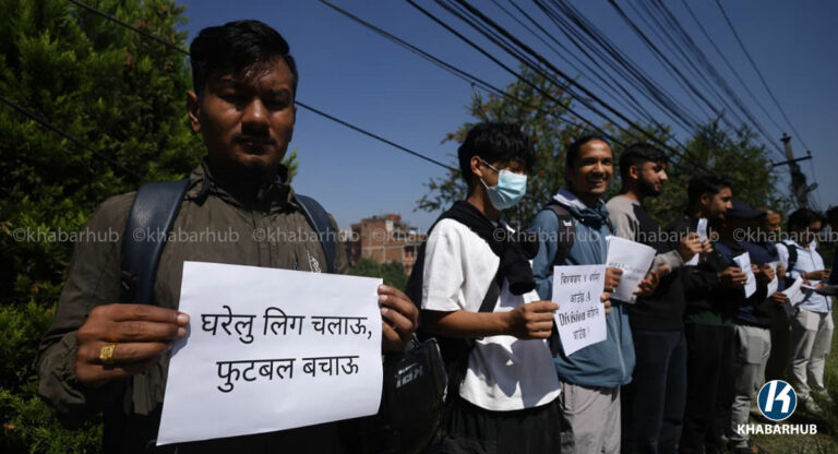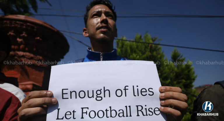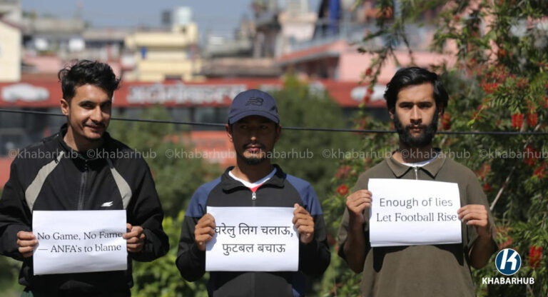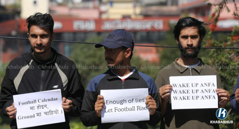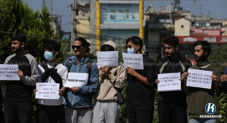 काठमाडौं– नेपाली फुटबलमा विगत केही वर्षयता देखिएको अव्यवस्था, लिग स्थगन, आर्थिक अपारदर्शिता र नेतृत्वको गैरजवाफदेहिताविरुद्ध आइतबार फुटबलका स्वतन्त्र समर्थकहरूले एन्फा गेट अगाडि शान्तिपूर्ण धर्ना कार्यक्रम गरेका छन् ।