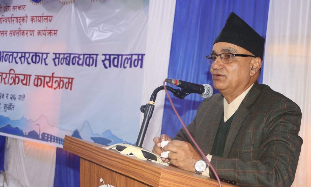 मुख्यमन्त्री तथा मन्त्रिपरिषद्को कार्यालय सुर्खेतको आयोजनामा आजदेखि वीरेन्द्रनगरमा सञ्चालन भएको ‘प्रदेश तथा स्थानीय तहबीच अन्तरसरकार सम्बन्धका सवालमा छलफल तथा अन्तरक्रिया’ को समापन समारोहमा मुख्यमन्त्री यामलाल कँडेलले विकास निर्माण तथा सेवा प्रवाहमा तीनै तहका सरकारहरूको सहकार्य र समन्वयको अभावले नागरिक असन्तुष्टि बढ्दै गएको बताए ।