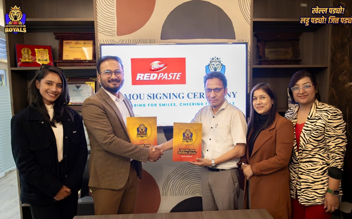 सुदूरपश्चिम रोयल्स र डाबर नेपालबीच बुधबार काठमाडौँमा सम्झौता भएको हो । सम्झौतापत्रमा सुदूरपश्चिम रोयल्सका प्रमुख कार्यकारी अधिकृत (सीईओ) प्रकाश खड्का र डाबर नेपालका मार्केटिङ प्रमुख अभया गोर्खालीले हस्ताक्षर गरे ।