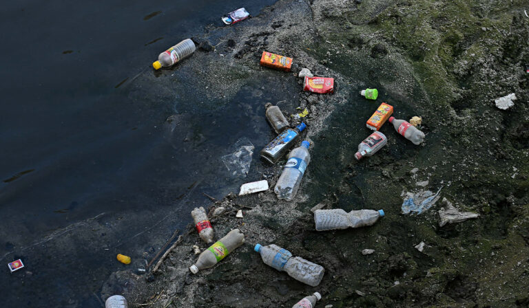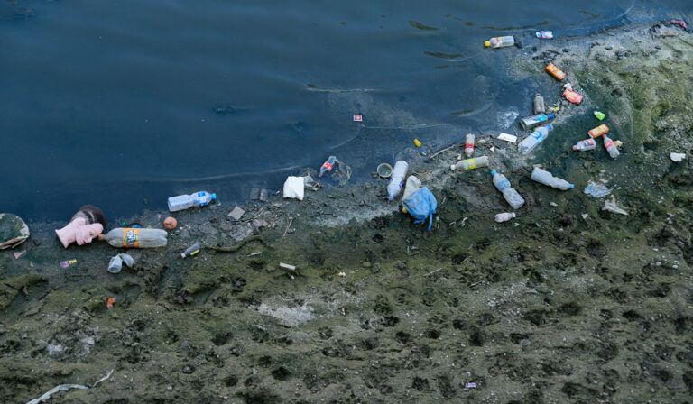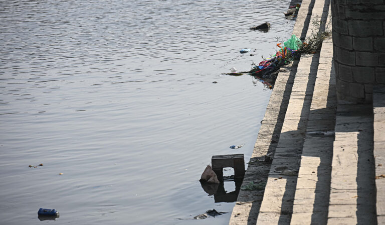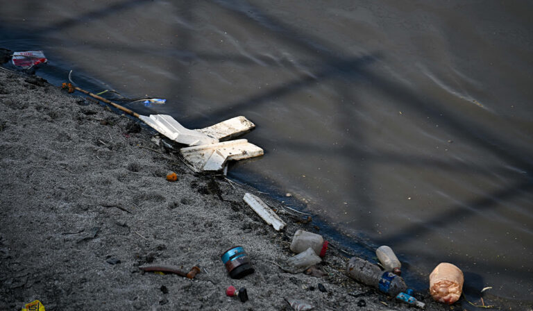 प्लास्टिक, घरेलु फोहोर, निर्माण सामग्री लगायतका थुप्राले नदीका सतह र किनार दुबै छोपिएका छन् ।