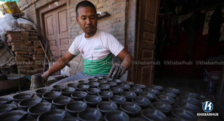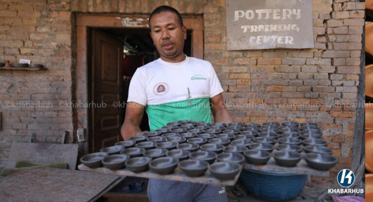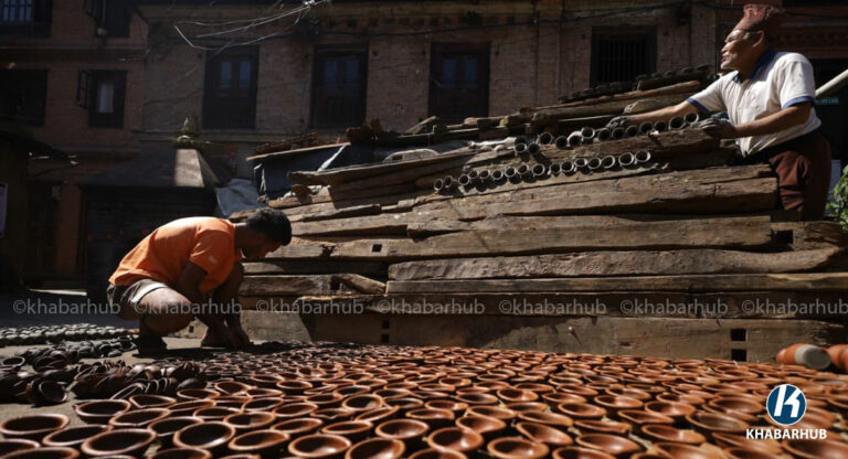 काठमाडौं– तिहार नजिकिएसँगै भक्तपुरका स्थानीय प्रजापति समुदाय माटोका पाला बनाउन व्यस्त छन् ।