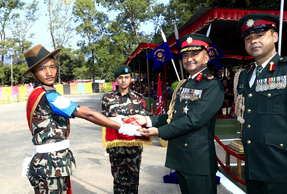 तालिम समापनका अवसरमा त्रिशूलीस्थित श्री नं १ सैन्य तालिम केन्द्रमा तालिम महानिर्देशक ध्रुवप्रकाश शाहलगायतका सैनिक अधिकृतले  कवाज निरीक्षण गरी उत्कृष्ट शिक्षार्थीलाई पुरस्कार प्रदान गरे ।