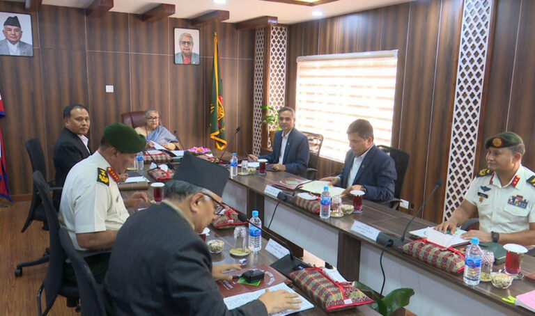 सिंहरदबारस्थित सुरक्षा परिषद् सचिवालयमा बसेको बैठकमा देशको आन्तरिक शान्ति, सीमा सुरक्षा र समसामयिक चुनौतीहरूबारे मन्त्रालयका उच्च अधिकारीहरूले प्रतिवेदन पेश गरेका थिए ।