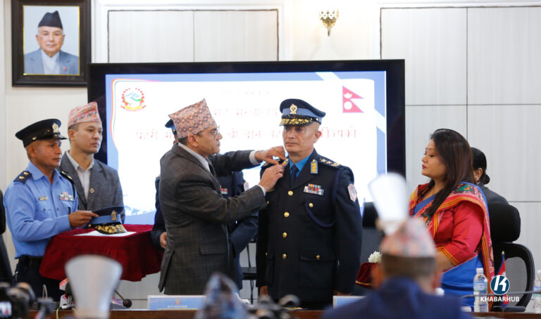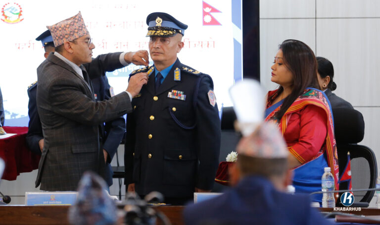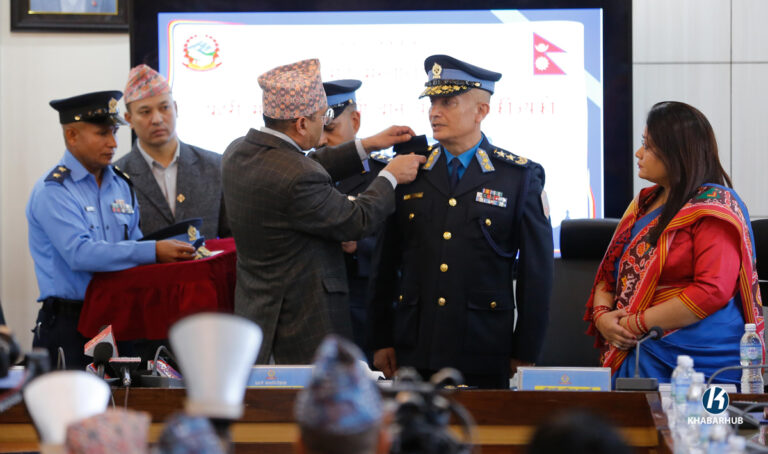 काठमाडौं- नेपाल प्रहरीका नवनियुक्त महानिरीक्षक दान बहादुर कार्कीलाई दर्ज्यानी चिन्हबाट सुशोभित गरिएको छ।