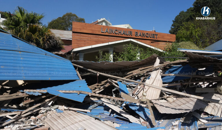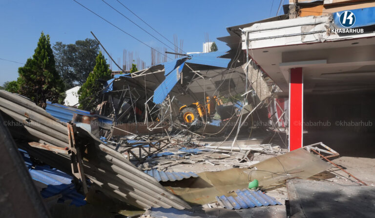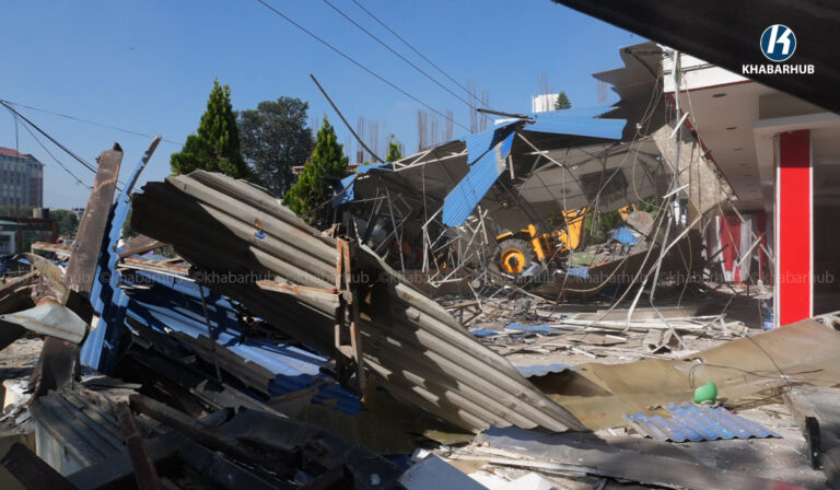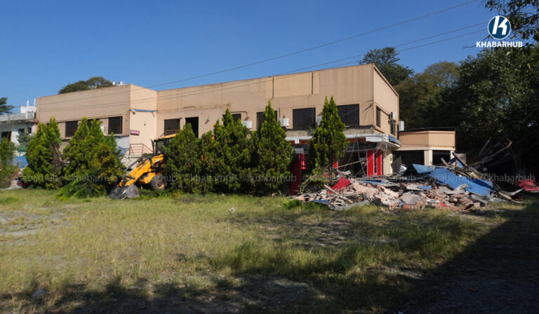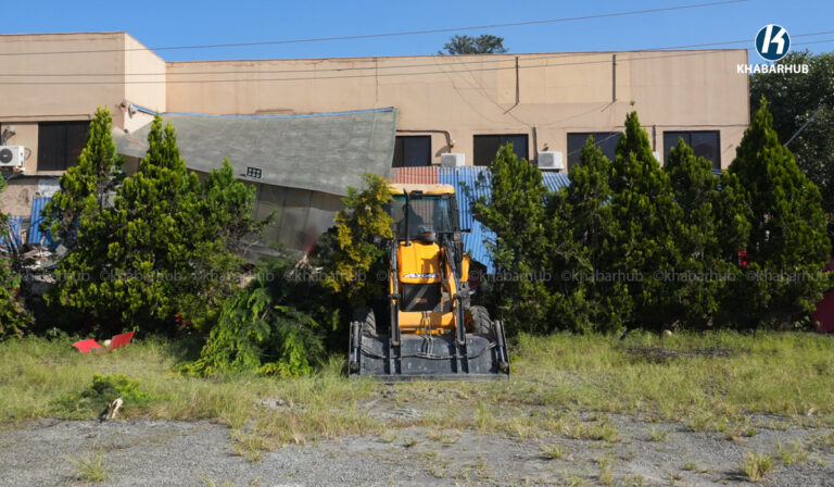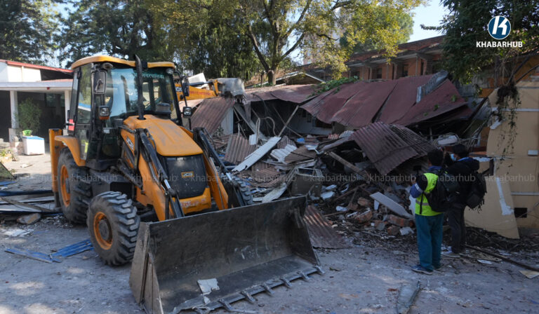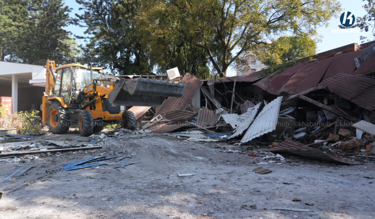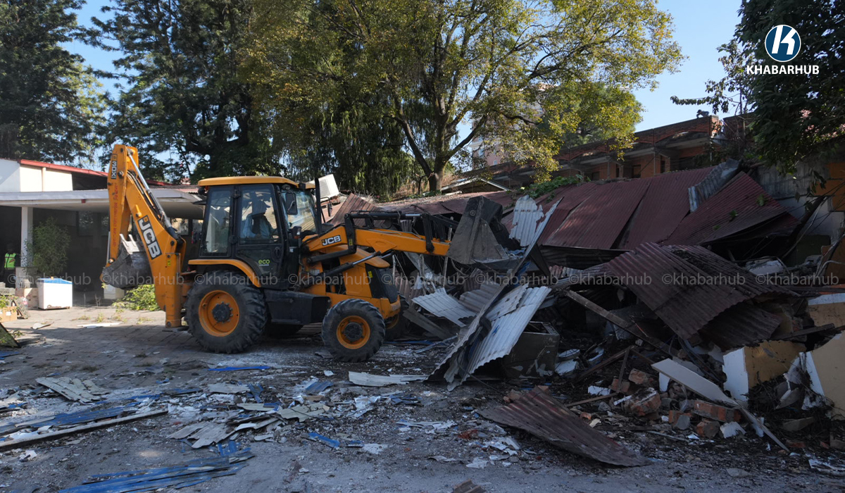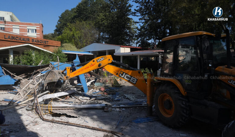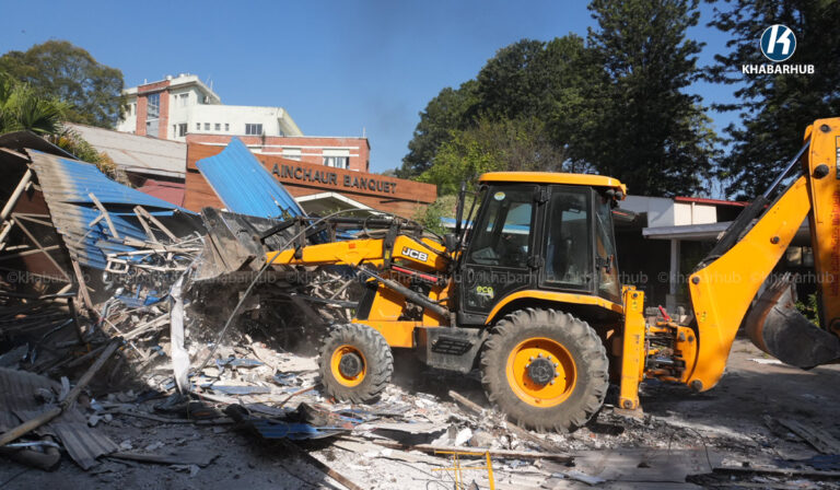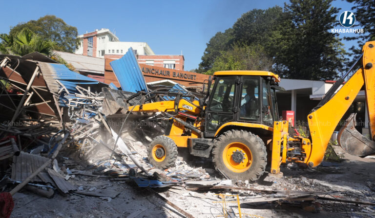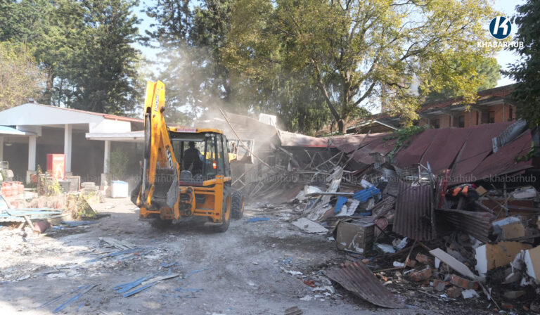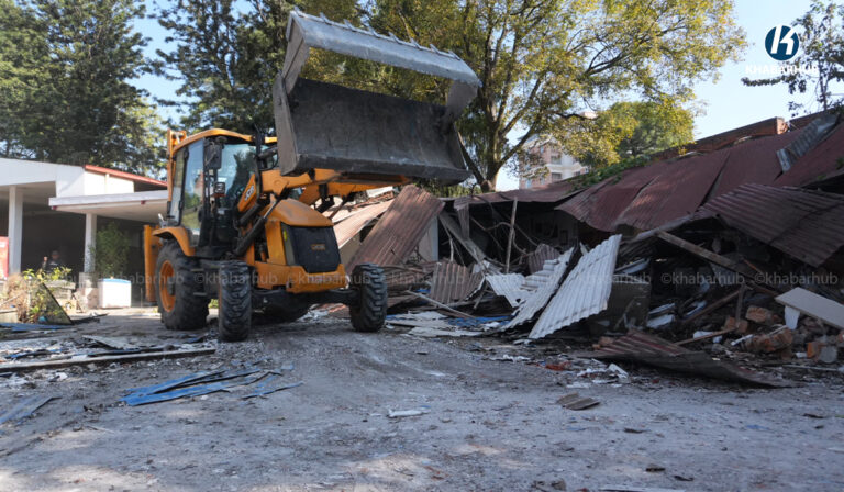 नेपाल स्काउटको लैनचौरस्थित जग्गामा बनेको संरचनामा महानगरको डोजर (तस्बिरहरू) | Khabarhub Khabarhub