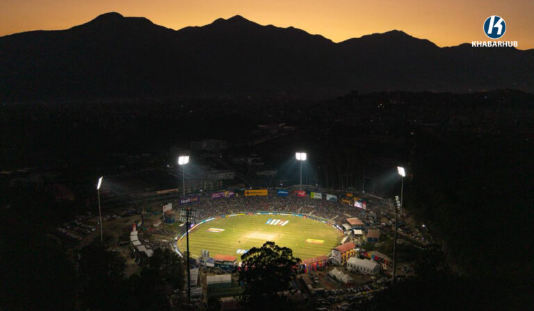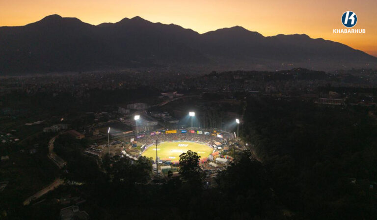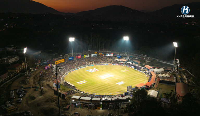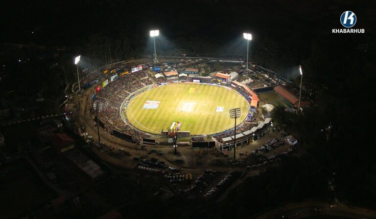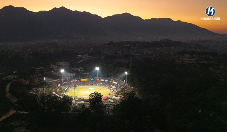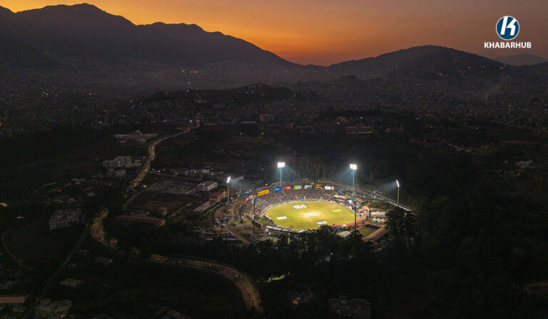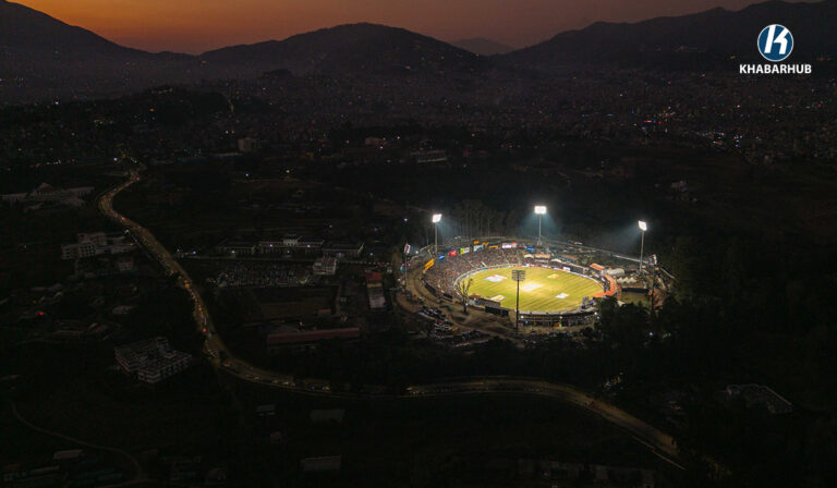 खेलमा यस्तो देखियो ड्रोनबाट कीर्तिपुर क्रिकेट मैदानको दृश्य :