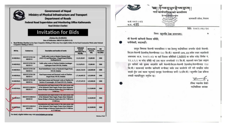 यो मित्थ्या सूचना प्रवाह गराइयो । टेन्डरको लामो प्रकृया छ । त्यसरी रातिराति औपचारिक काम गर्न सकिन्छ र ? त्यसमा त हामीले गत साल सरकार र आयोजनासँग सम्झौता गरेअनुरुप मंगलबार ४ बजेअघि नै टेण्डर आह्वान गरिएको बारे पत्रिकामा सूचना निकालिएको थियो । स्थानीय पालिकाले सडक विभागलाई बजेट कार्यान्वयनका लागि सिफारिस मात्रै गरेका हौं ।