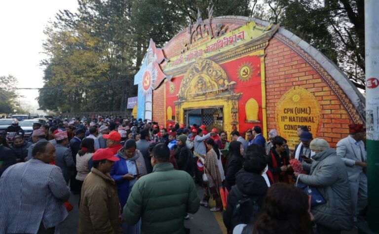 काठमाडौं – नेकपा (एमाले)को ११ औँ महाधिवेशनको बन्दसत्र रोकेर केन्द्रीय कमिटी बैठक बोलाएका अध्यक्ष केपी शर्मा ओली डेढ घण्टापछि बैठक स्थलमा पुगेका छन् ।