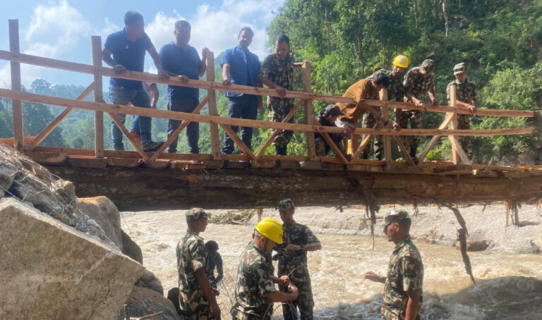 ‘सुरक्षाकर्मी नै खटाएर आवतजावतमा रोक लगाएका छौँ । यस्तै झावा पुवाखोलामा पनि स्थानीय र नेपाली सेनाको प्रयासमा काठको साँघु निर्माण भएको छ । उक्त काठको फड्के हुँदै साना सवारी वारपार गराइएको पाइएपछि सूचना जारी गरिसकेका छौँ’, उनले भने ।