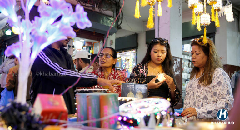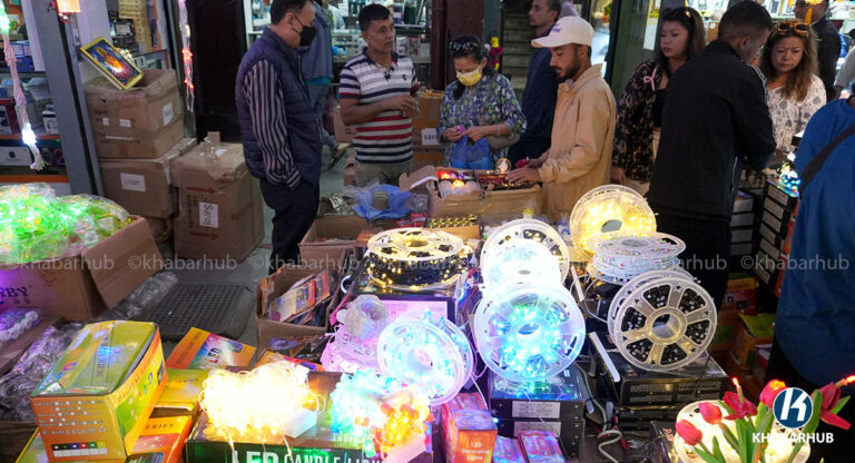 काठमाडौं– तिहार नजिकिएसँगै राजधानीको महाबौद्ध, बाङ्गेमूढा क्षेत्रमा झिलिमिली बत्तीहरू व्यापार सुरु भएको छ ।