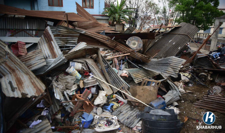 आज एमाले कार्यालयअगाडि निर्माण गरिएका दुई ग्यारेज र कवाडी संकलन केन्द्रमा नगरप्रहरीले डोजर चलाएको हो ।
