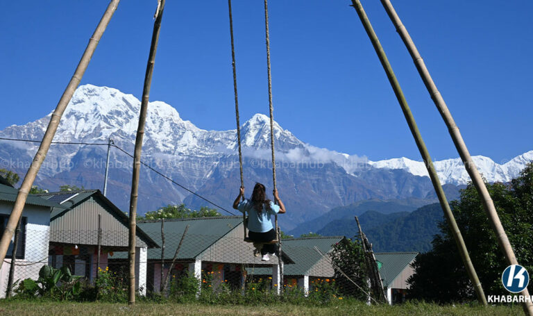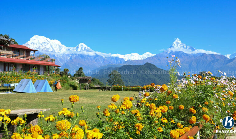 क्याम्प पुग्दा आँखै अगाडि माछापुच्छ्रे र अन्नपूर्णसहितका हिमालले धेरैलाई मोहित बनाउँछ ।